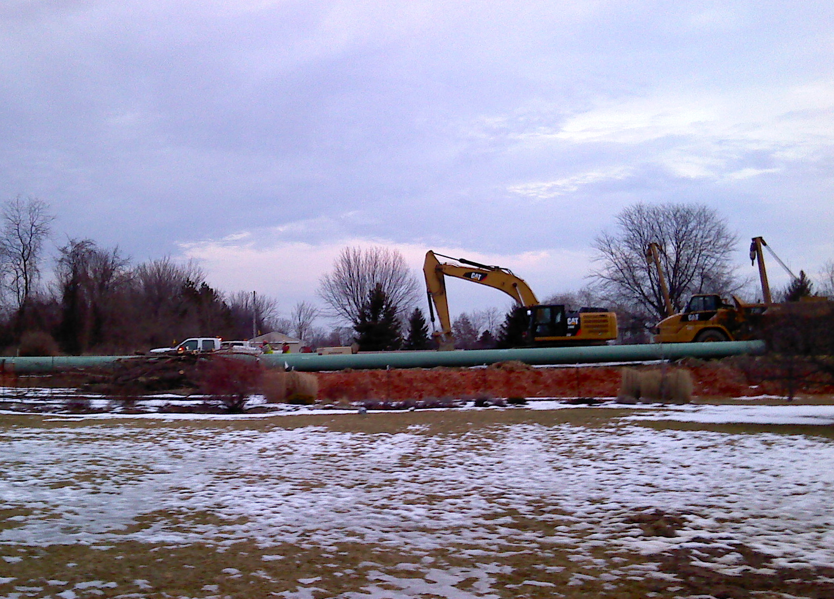 When it comes to Enbridge lately, mostly we sit around waiting for the stretches of green steel pipe that dominate our backyard vista to somehow burrow their way into the ground– so that we can finally stop looking at them. Well, that’s not totally true. We’ve been trying to get some answers as to when construction might wrap up, so we can begin devising a tree-replanting plan. But we have been waiting to hear back from Tom Hodge with an update.