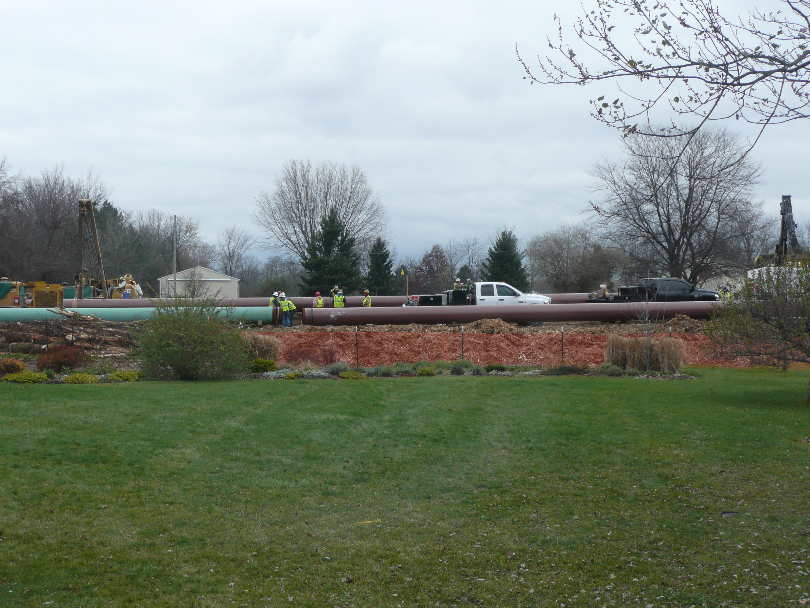 You might recall that a week or so ago we mentioned that we are so very sick of looking at the strings of green steel pipe in our backyard. Well, we’re still sick of it. And we asked our ROW agent and Project Manager Tom Hodge when we might expect that pipe to be placed in the ground and restoration to begin. Here is what we learned: